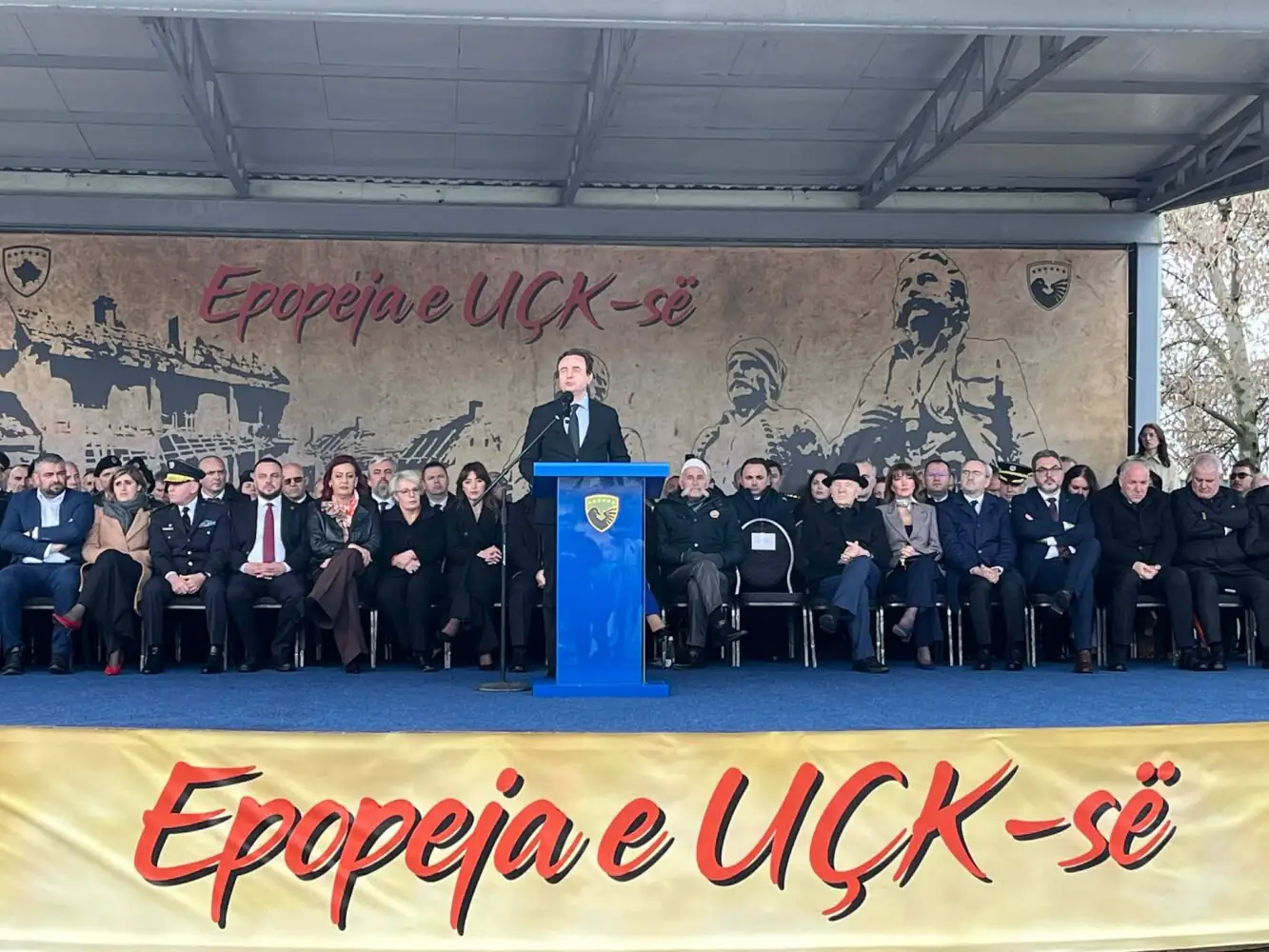 Kryeministri Albin Kurti nga kazerma “Adem Jashari” në Prishtinë në 28-vjetorin e Epopesë së UÇK-së...