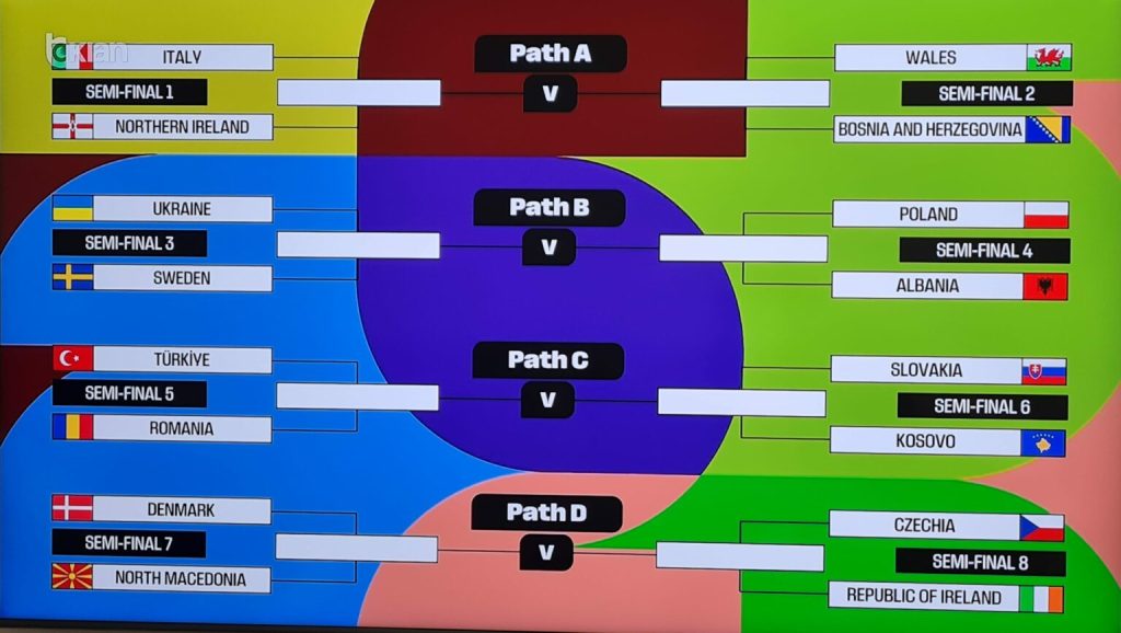 Përfaqësuesja dardane do të ketë një rrugë po aq sfiduese. Kosova do të udhëtojë drejt Sllovakisë për gjysmëfinalen e saj, një kundërshtar që dihet se është i disiplinuar dhe i fortë në ndeshjet me presion. Nëse Kosova arrin ta kalojë me sukses këtë pengesë, atëherë në finalen e madhe do të përballet në Fadil Vokrri me fituesin e sfidës Turqi–Rumani, dy ekipe tradicionale me peshë në futbollin europian.