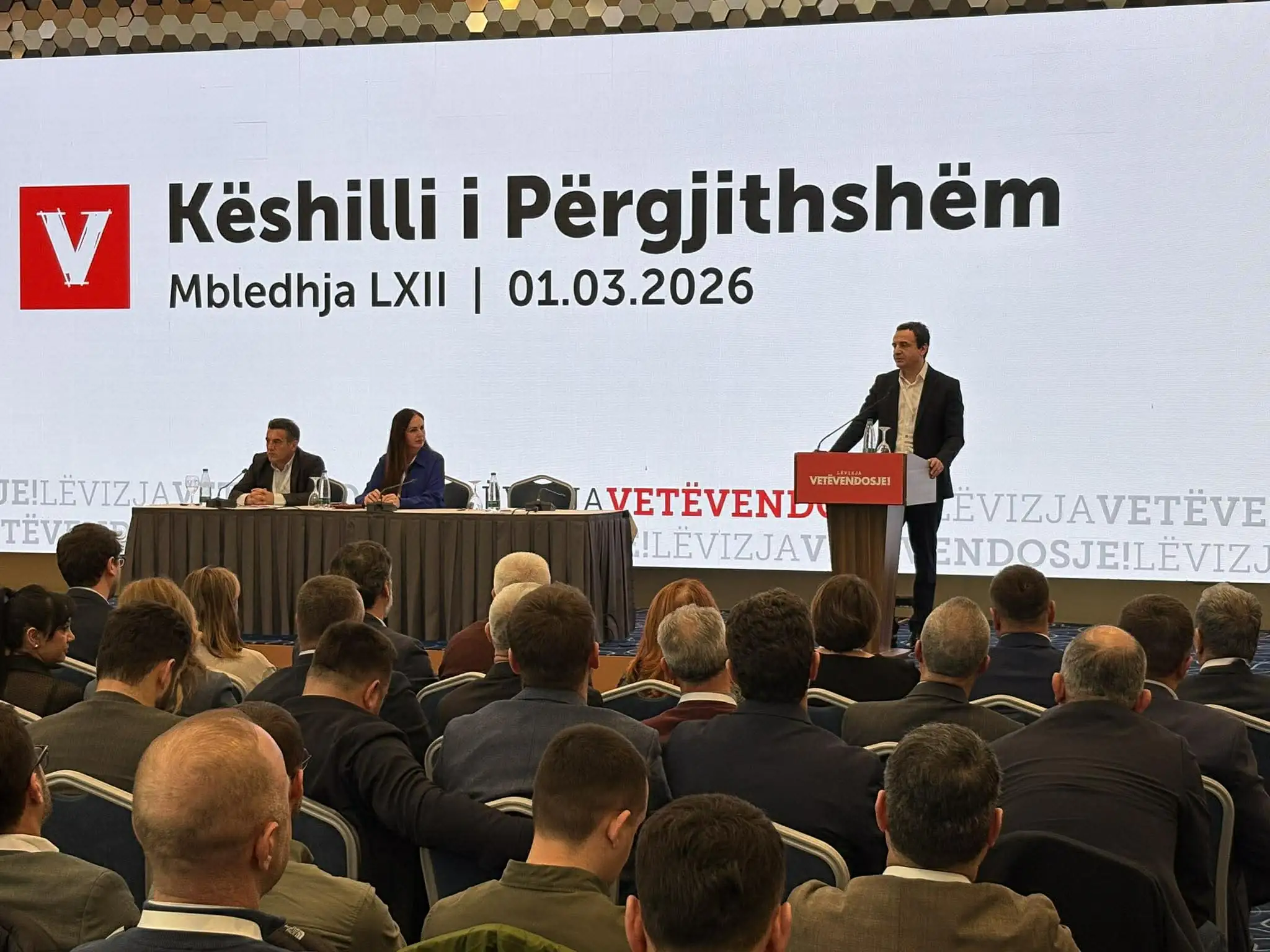 Kryeministri i Kosovës, Albin Kurti, në mbledhjen e Këshillit të Përgjithshëm të Lëvizja Vetëvendosje foli...